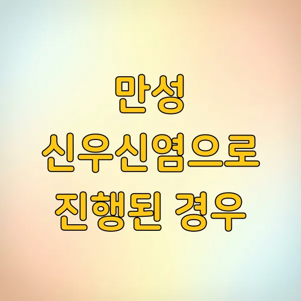 만약 신우신염이 제대로 치료되지 않거나 반복적으로 발생하여 만성 신우신염 으로 진행된 경우에는 상황이 조금 더 복잡해져요. 만성 신우신염은 신장 기능 저하를 유발할 수 있어 꾸준한 관리가 필요하거든요.