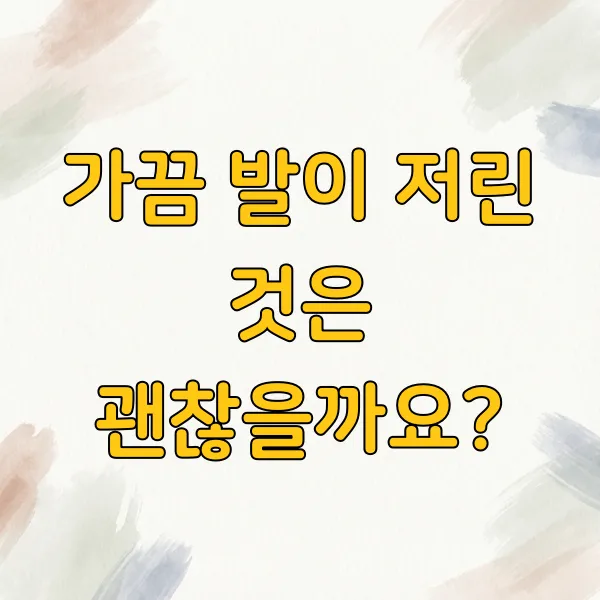 가끔 한두 번씩 잠깐 발이 저린 것은 크게 걱정하지 않아도 괜찮을 수 있어요 . 단순히 오래 서 있거나 특정 자세로 인해 일시적으로 신경이 눌렸을 가능성이 높기 때문이죠.