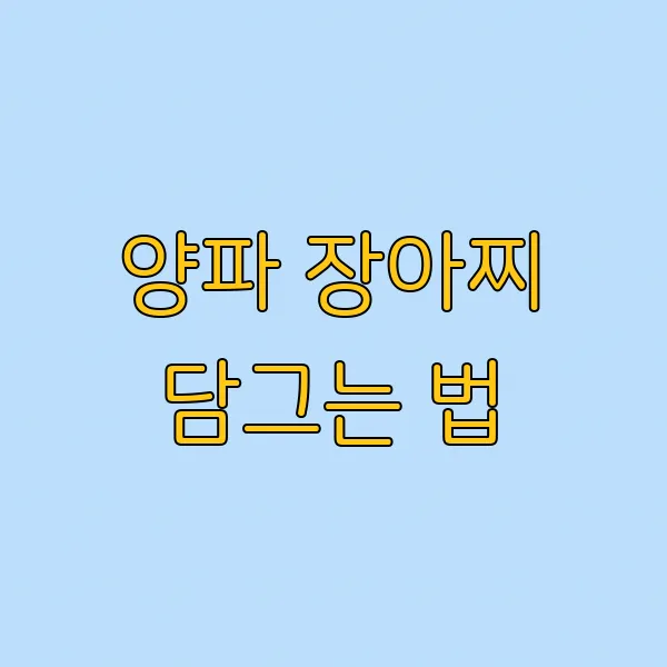 | 주요 과정 | 양파/고추 썰어 병에 담기 → 장물 끓여 뜨거울 때 붓기 → 하루 실온 숙성 후 냉장 보관 |